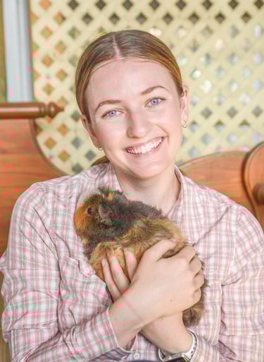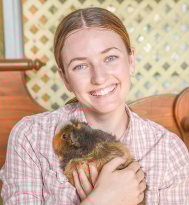Flicka, my Border Collie, is currently completing her therapy dog training. She’s playful, soulful, and already brings a calming presence to the farm. She loves fetch (especially with her Mike Wazowski toy), trips to the forest, and long naps in her cosy nook.